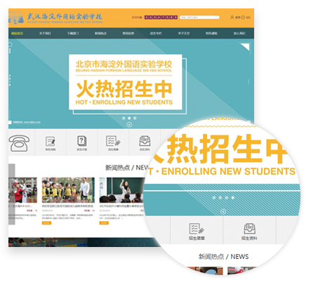 首頁(yè)首屏采用滾動(dòng)大圖的形式,展示校園環(huán)境、課堂教學(xué)等圖片內(nèi)容,不僅使網(wǎng)站界面整體上清新高雅、大氣美觀,具有強(qiáng)烈的動(dòng)態(tài)美感,而且大圖作為網(wǎng)站的一種有效的宣傳方式,作為網(wǎng)站的直接視覺(jué)元素,可以有效地吸引用戶的注意力,突出學(xué)?,F(xiàn)代化、國(guó)際化學(xué)校辦學(xué)特色。