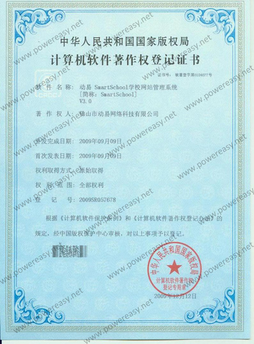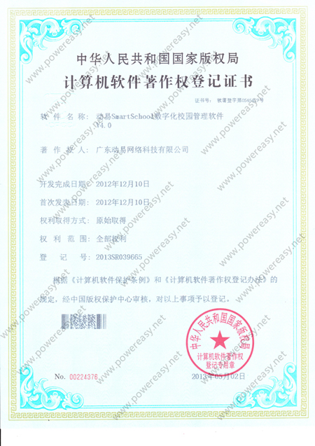計(jì)算機(jī)軟件著作權(quán)登記證書(shū) 動(dòng)易 SmartSchool V3.0