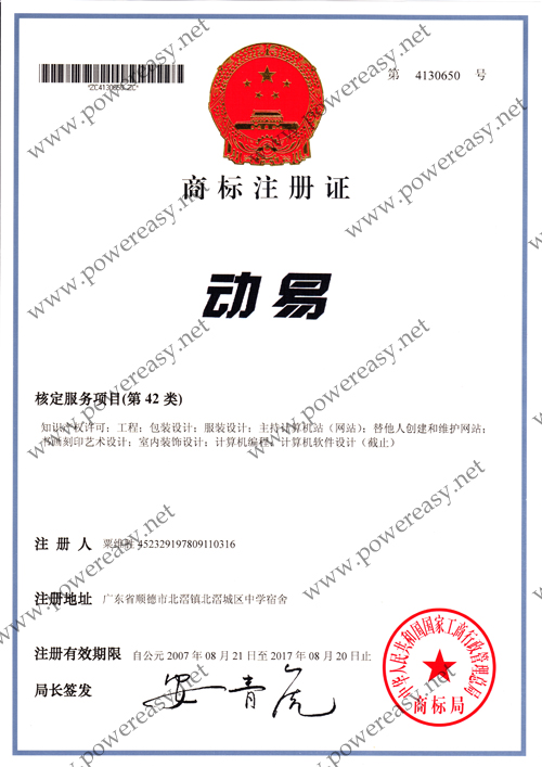 “動(dòng)易”商標(biāo)注冊(cè)證