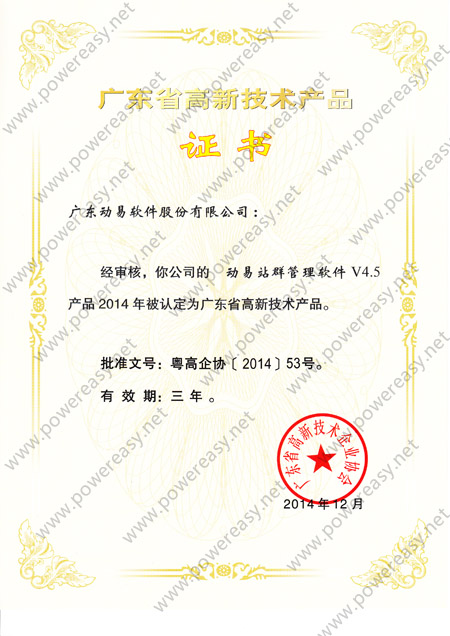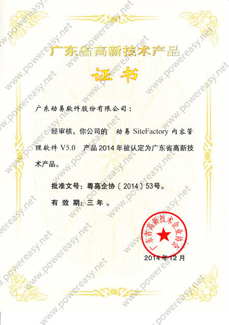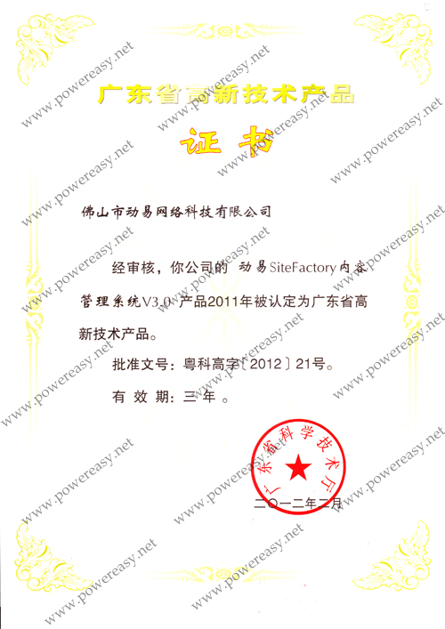 2010年廣東省高新技術(shù)產(chǎn)品 (SiteFactory)證書(shū)