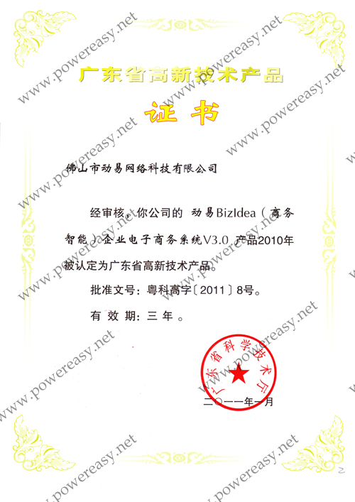2010年廣東省高新技術(shù)產(chǎn)品 (BizIdea)證書(shū)