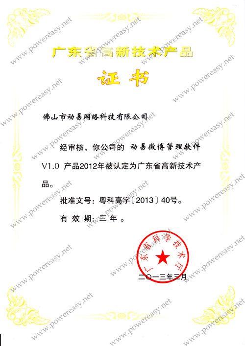 2012廣東省高新技術(shù)產(chǎn)品-動(dòng)易微博管理軟件V1.0
