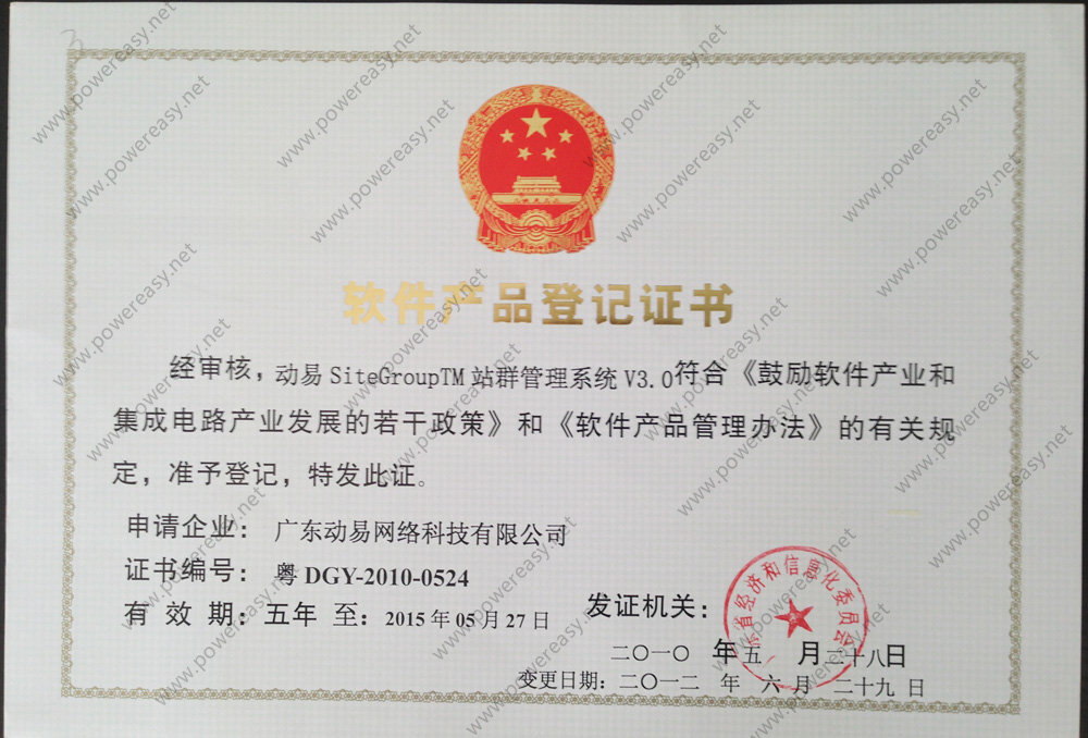 軟件產(chǎn)品登記證書(shū) 動(dòng)易SiteGroup站群管理系統(tǒng)V3.0