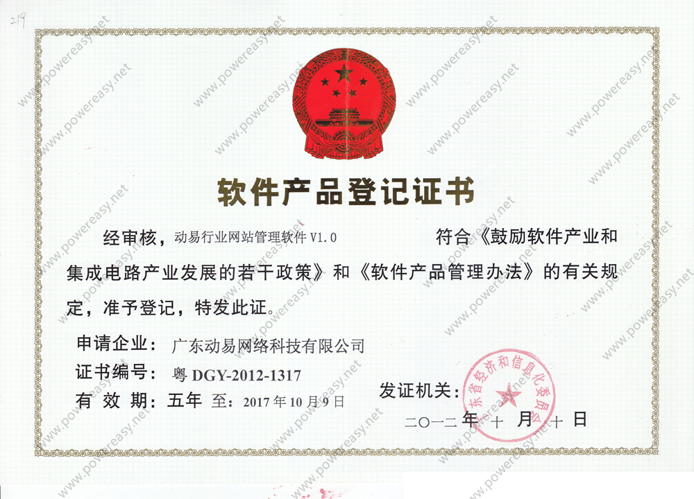 軟件產(chǎn)品登記-動(dòng)易行業(yè)網(wǎng)站管理軟件V1.0