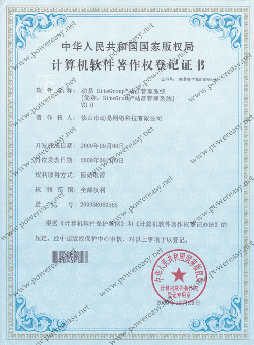 計(jì)算機(jī)軟件著作權(quán)登記證書(shū) 動(dòng)易 SiteGroup V3.0