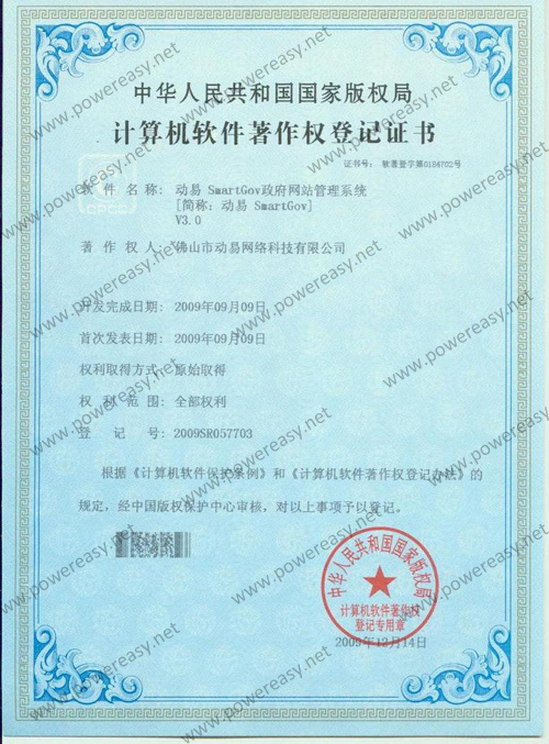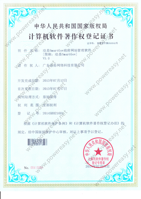 計(jì)算機(jī)軟件著作權(quán)登記證書(shū) 動(dòng)易 SmartGov V3.0