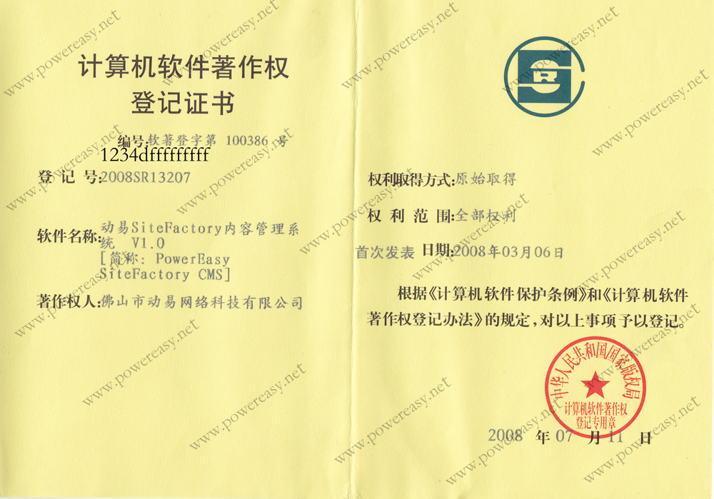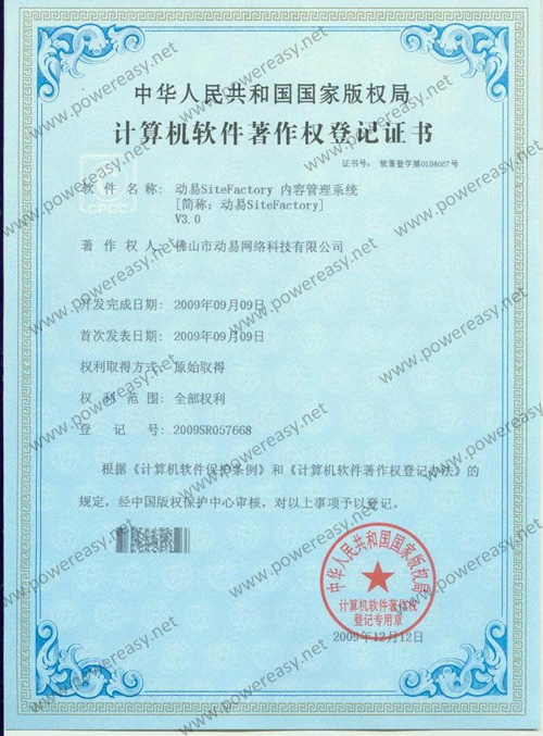 計(jì)算機(jī)軟件著作權(quán)登記證書(shū) 動(dòng)易 SiteFactory V3.0