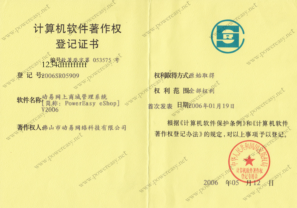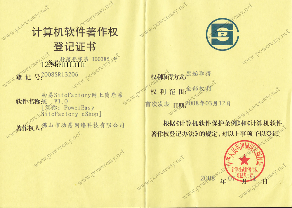 軟件著作權(quán)登記證書(shū) 動(dòng)易SiteFactory eShop