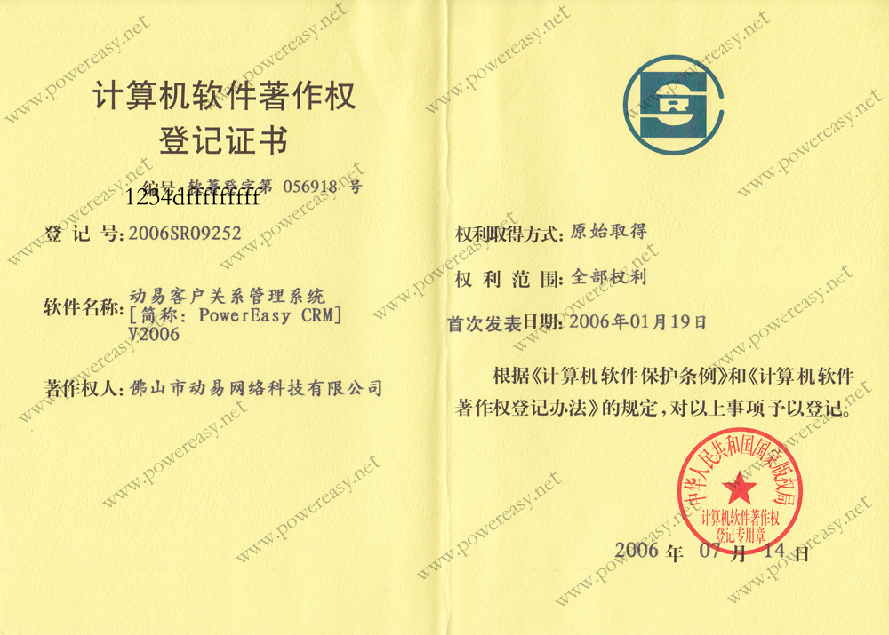 軟件著作權(quán)登記證書(shū) 動(dòng)易客戶關(guān)系管理系統(tǒng)V2006