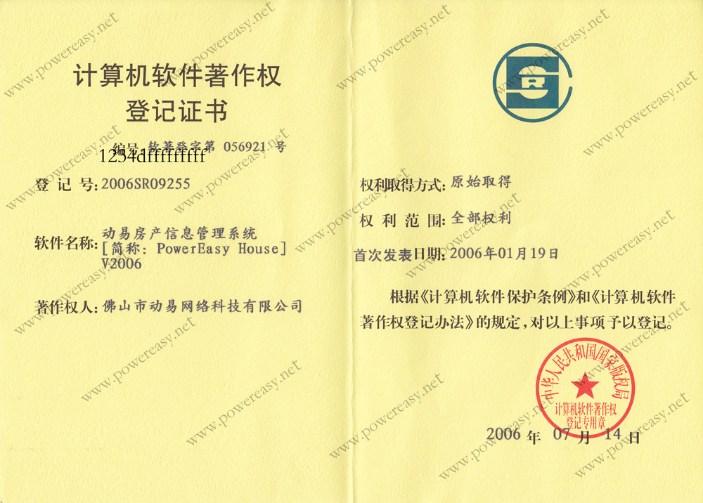 軟件著作權(quán)登記證書(shū) 動(dòng)易房產(chǎn)信息管理系統(tǒng)V2006