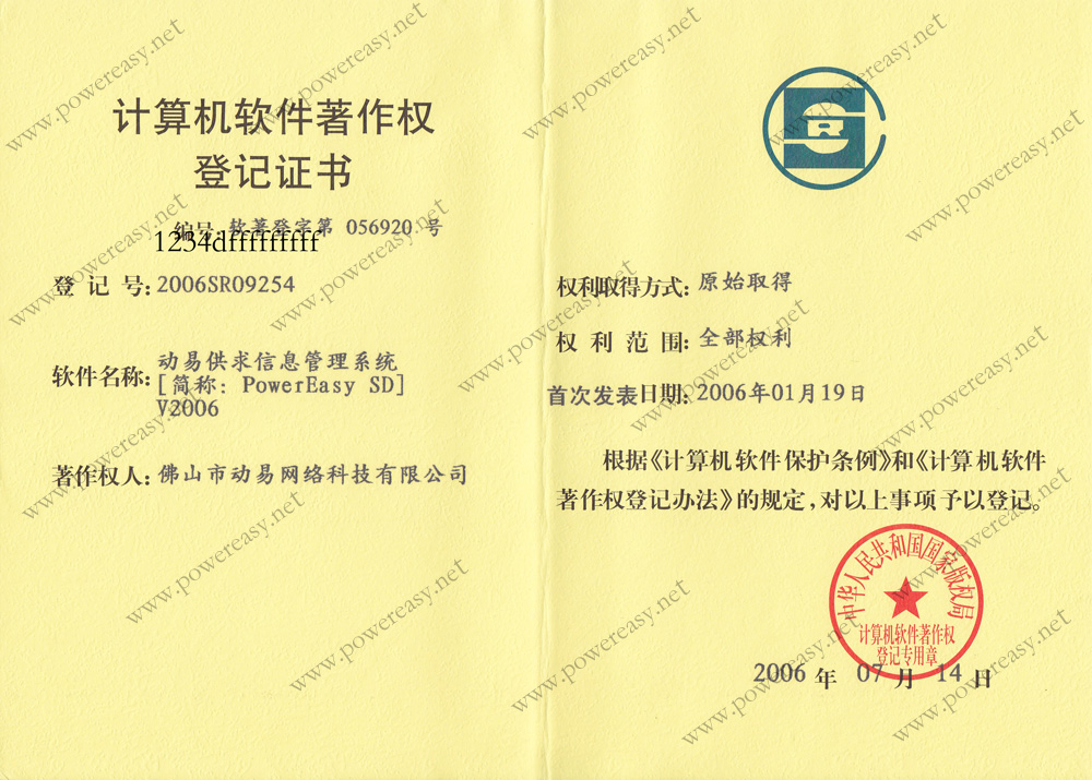 軟件著作權(quán)登記證書(shū) 動(dòng)易供求信息管理系統(tǒng)V2006