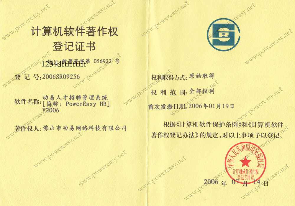 軟件著作權(quán)登記證書(shū) 動(dòng)易人才招聘管理系統(tǒng)V2006