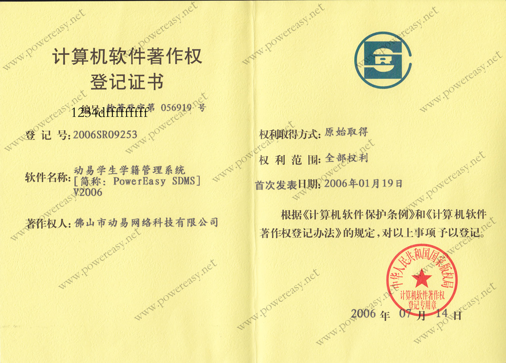 軟件著作權(quán)登記證書(shū) 動(dòng)易學(xué)生學(xué)籍管理系統(tǒng)V2006
