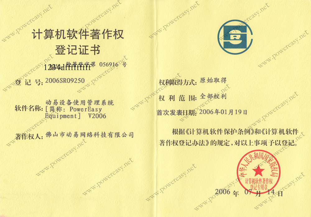 軟件著作權(quán)登記證書(shū) 動(dòng)易設(shè)備使用管理系統(tǒng)V2006