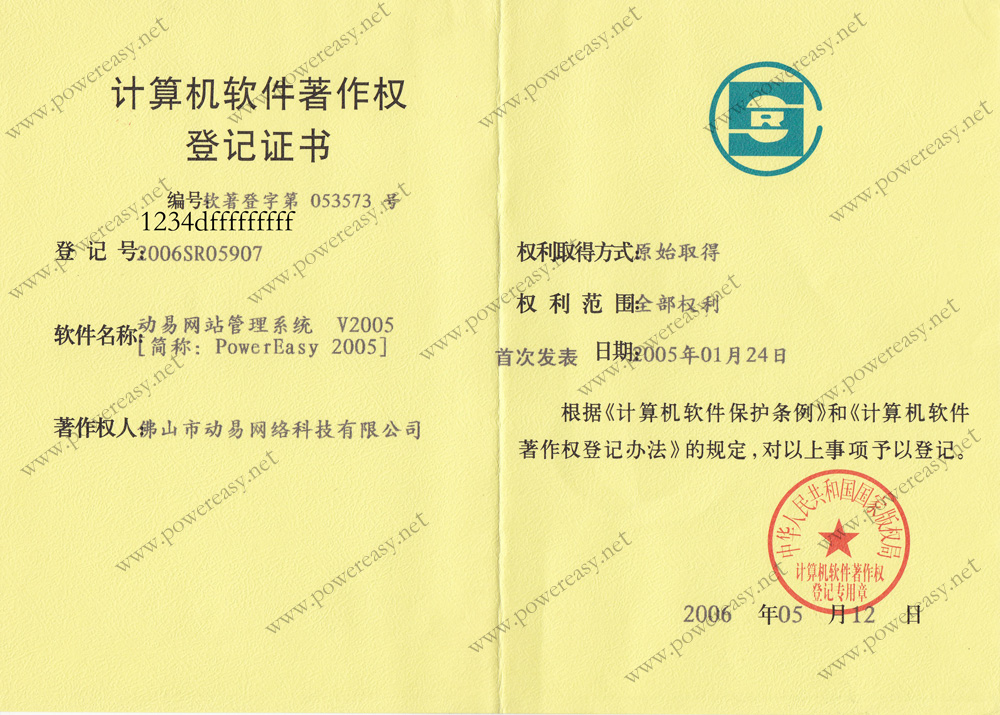 軟件著作權(quán)登記證書(shū) 動(dòng)易網(wǎng)站管理系統(tǒng)V2005