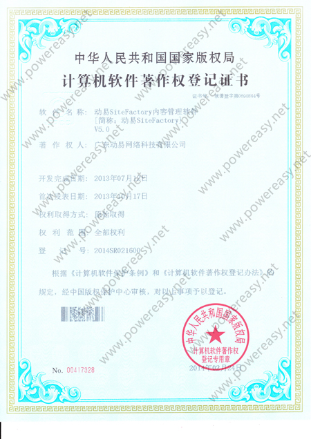 軟件著作權(quán)-動(dòng)易SiteFactory內(nèi)容管理軟件V5.0