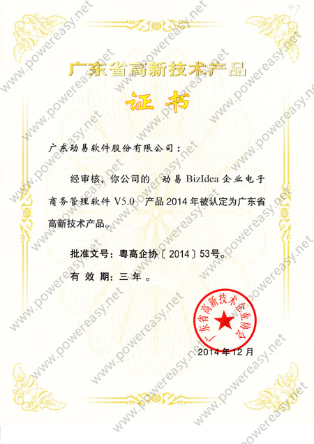 廣東省自主創(chuàng)新產(chǎn)品認(rèn)定證書(shū) 動(dòng)易BizIdea V3.0