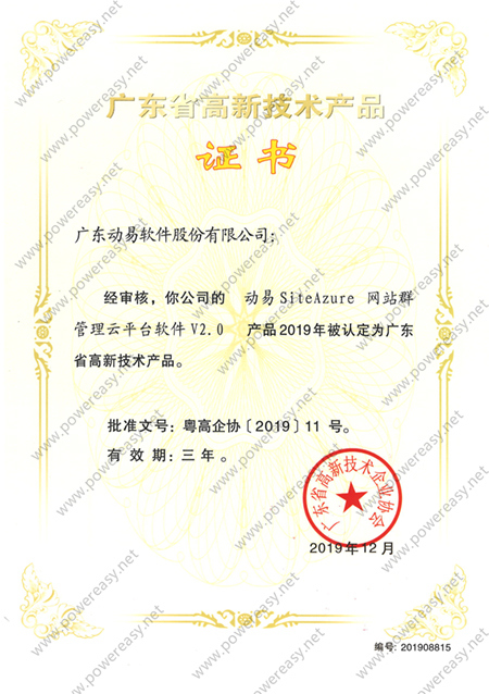 廣東省自主創(chuàng)新產(chǎn)品認(rèn)定證書(shū) 動(dòng)易SiteFactory V3.0