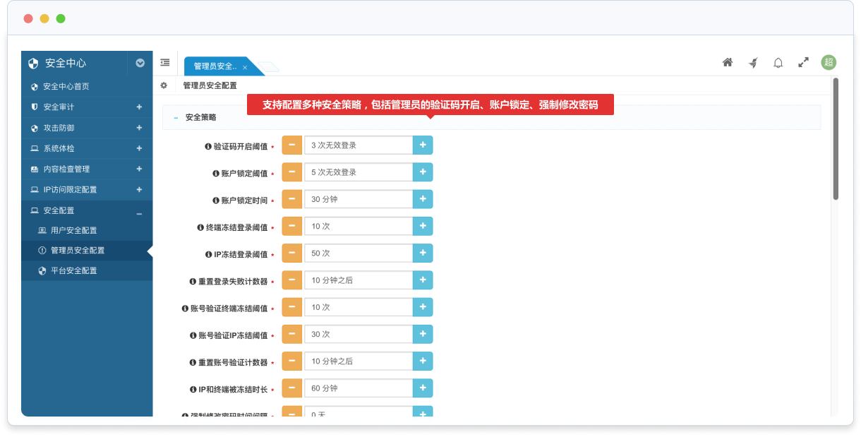 支持創(chuàng)建、修改、查看、刪除、搜索、篩選、鎖定、解鎖、重置密碼、重置錯(cuò)誤登錄次數(shù)、查看權(quán)限、批量刪除、批量鎖定、批量解鎖、批量重置密碼等常用功能;