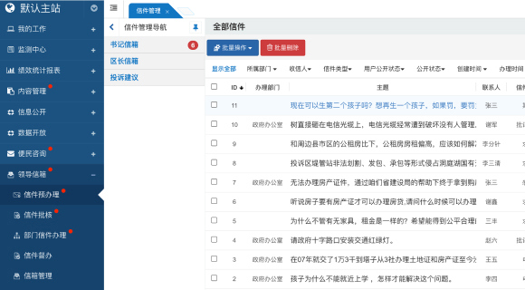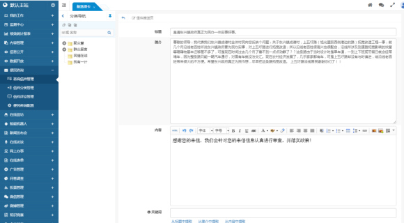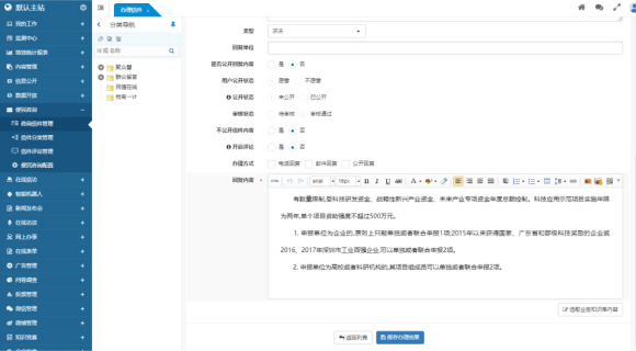 業(yè)務知識庫在內容管理基礎上進行了深度開發(fā),將內容管理與領導信箱等模塊有機結合。在處理信件時,管理員可以直接從業(yè)務知識庫中檢索參考回復內容,而處理完畢的信件也可以推送到業(yè)務知識庫中,進一步豐富和完善知識庫。此外,全文檢索和智能機器人功能會優(yōu)先展示業(yè)務知識庫的內容,確保用戶能夠快速獲取到最相關的信息和參考資料。