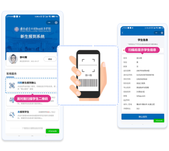 班主任可以通過掃描學(xué)生的報到二維碼來查看學(xué)生信息,進行驗證和確認(rèn)報到。