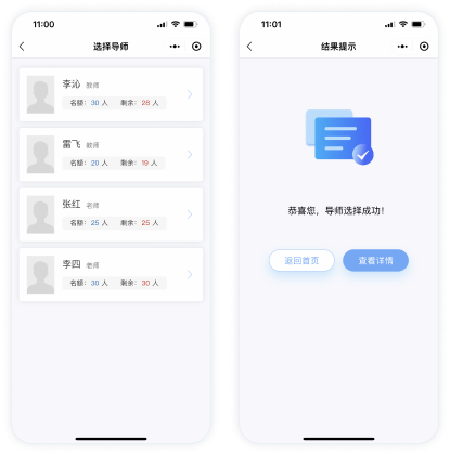 支持顯示可選導(dǎo)師信息和剩余名額并一鍵選擇;