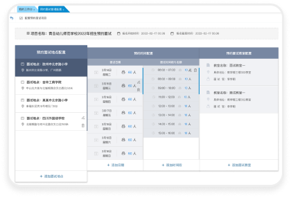 支持按照面試地點(diǎn)、日期、時(shí)間段進(jìn)行篩選;可直觀查看相應(yīng)的名額和已報(bào)名人數(shù);