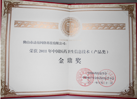 2011年10月31~11月3日,“第五屆中國國際電子病歷? 醫(yī)藥物聯(lián)網(wǎng)?健康云計算博覽會”在深圳隆重舉辦,大會評選出了一年一度的中國醫(yī)藥衛(wèi)生信息“金鼎獎”,動易軟件榮獲“2011年中國醫(yī)藥衛(wèi)生信息化首選品牌”獎和“2011年中國醫(yī)藥衛(wèi)生信息技術(產(chǎn)品類)金鼎獎”。