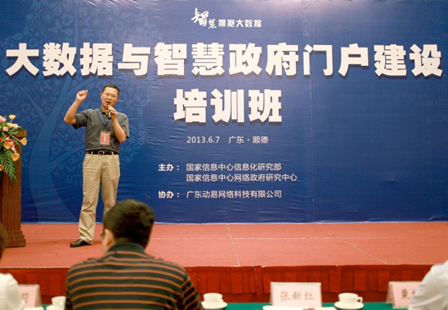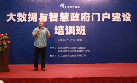 2013年6月7日,由國家信息中心信息化研究部、國家信息中心網(wǎng)絡(luò)政府研究中心(簡稱網(wǎng)研中心)主辦,廣東動易軟件股份有限公司承辦的“大數(shù)據(jù)與智慧政府門戶建設(shè)”培訓(xùn)班在廣東順德舉行。來自廣東、湖南、貴州等地區(qū)60個市縣及部門的政府網(wǎng)站管理人員及動易公司相關(guān)負責人共140人參加了本次培訓(xùn)。國家信息中心信息化研究部主任、網(wǎng)研中心主任張新紅以及網(wǎng)研中心副主任續(xù)揚,網(wǎng)研中心培訓(xùn)認證部主任崔巖莉,咨詢部主任王建冬博士,廣東動易軟件股份有限公司總裁粟維勝先生等相關(guān)負責同志參加了此次會議。會議由網(wǎng)研中心副主任續(xù)揚主持。