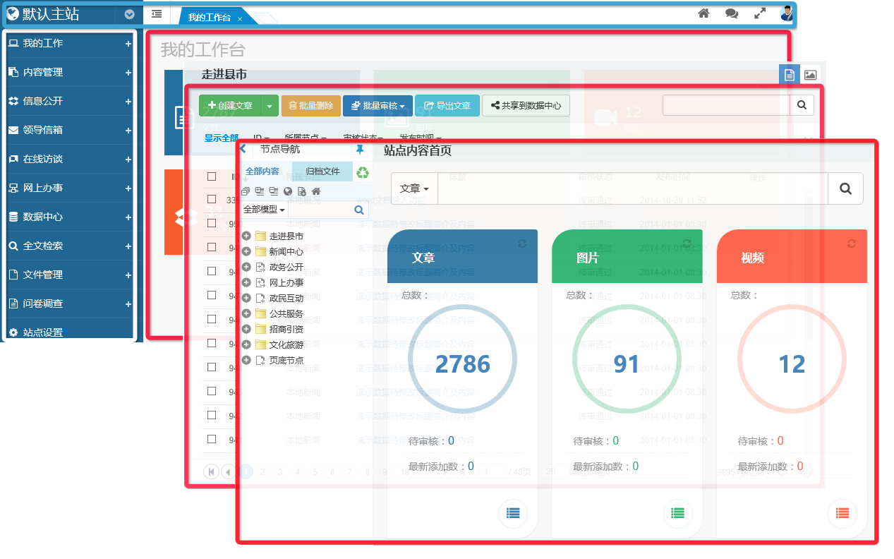 (進入內容管理,系統(tǒng)會自檢當前欄目的內容數(shù)據(jù),點擊數(shù)字即可進入相關欄目)