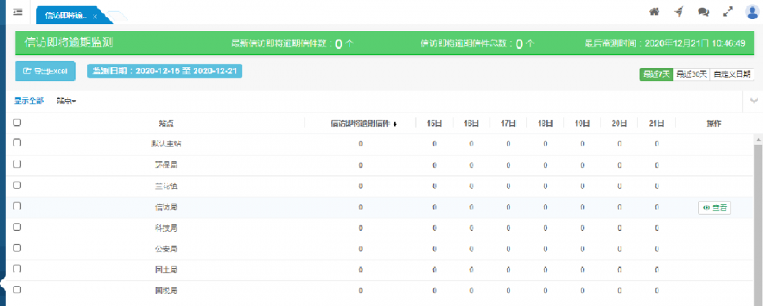 按站點(diǎn)顯示各站點(diǎn)的網(wǎng)上信訪逾期辦結(jié)情況的監(jiān)測(cè)結(jié)果。