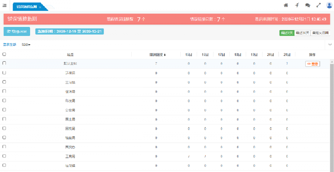按站點(diǎn)顯示各站點(diǎn)的錯(cuò)誤鏈接監(jiān)測(cè)情況。