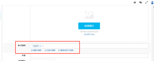 為了操作方便,系統(tǒng)還提供了三種方式來自動提取關鍵詞:從標題中提取、從內(nèi)容中提取、從“搜索熱詞中選取”。