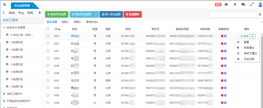 畢業(yè)生在小程序中對(duì)本人信息進(jìn)行核對(duì),由管理員進(jìn)行數(shù)據(jù)初審及終審后,可將畢業(yè)生數(shù)據(jù)導(dǎo)出Excel表,并導(dǎo)入到教育廳或教育部的系統(tǒng)。
