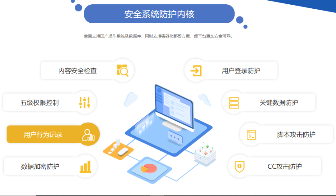 網(wǎng)站系統(tǒng)具備完善的安全體系防護(hù)系統(tǒng),已通過(guò)信息安全等級(jí)保護(hù)的要求,全面支持國(guó)產(chǎn)操作系統(tǒng)及數(shù)據(jù)庫(kù)。同時(shí)方案還集成強(qiáng)大的安全系統(tǒng)防護(hù)內(nèi)核,保障平臺(tái)穩(wěn)定可靠運(yùn)行。