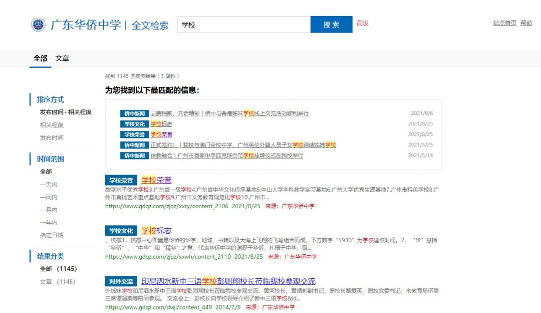 可在最短時間內(nèi),完整、準(zhǔn)確、及時地掌握網(wǎng)站所有信息,為網(wǎng)站解決海量數(shù)據(jù)下的站內(nèi)信息和文檔檢索應(yīng)用,向師生、社會人士提供高效、準(zhǔn)確、個性化的站內(nèi)資訊搜索體驗。清晰的目錄結(jié)構(gòu),也為用戶提供便捷、舒適的信息查詢環(huán)境。