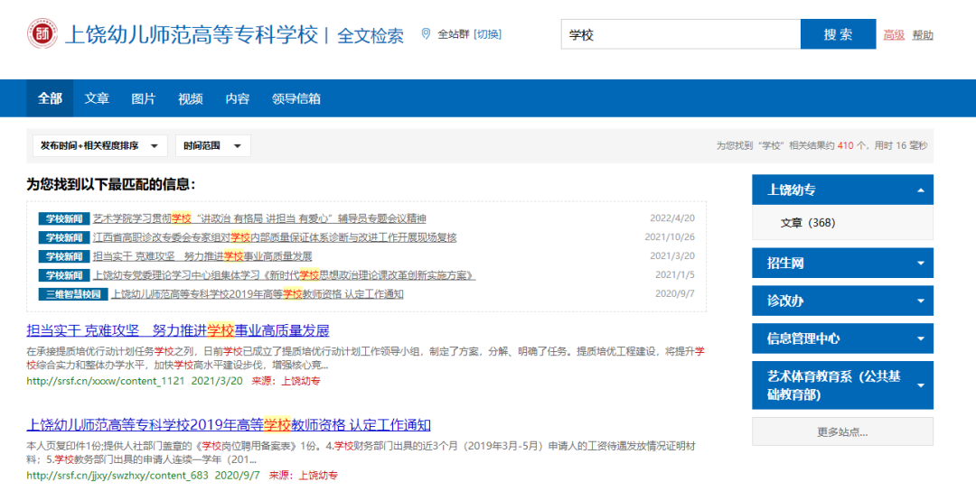 智能的全文檢索技術(shù),可支持檢索網(wǎng)站群全站數(shù)據(jù),也支持跨站點(diǎn)或指定站點(diǎn)的檢索。可為網(wǎng)站解決海量數(shù)據(jù)下的站內(nèi)信息和文檔檢索應(yīng)用,向師生、社會(huì)人士提供高效、準(zhǔn)確、個(gè)性化的站內(nèi)資訊搜索體驗(yàn),大大提升用戶在網(wǎng)站的檢索和查詢體驗(yàn)。