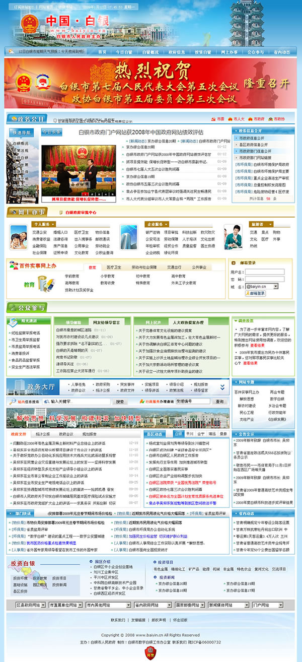白銀市政府門戶網(wǎng)一改“紅遍整站”的政府網(wǎng)站形象,由動(dòng)易提供用戶體驗(yàn)研究,幫助白銀市政府網(wǎng)站對(duì)前臺(tái)瀏覽及操作過(guò)程中,涉及到的界面、服務(wù)流程及感受等進(jìn)行UI優(yōu)化。提升白銀政府新形象。