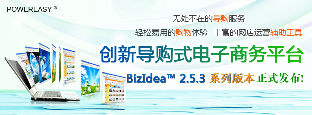 BizIdea(商務(wù)智能)是動(dòng)易公司投入數(shù)十開(kāi)發(fā)人員歷經(jīng)三年時(shí)間自主研發(fā)的新一代企業(yè)級(jí)電子商務(wù)平臺(tái),擁有著全套的專業(yè)電子商務(wù)支持工具,從站點(diǎn)構(gòu)建到商品陳列、從訂單協(xié)同處理到客戶關(guān)系維護(hù)、從進(jìn)銷存到財(cái)務(wù)管理、從促銷實(shí)施到輔助決策系統(tǒng)、從通訊工具到論壇博客支持等等,一應(yīng)俱全。而借助于BizIdea 全方位的導(dǎo)購(gòu)服務(wù)功能(配備完善的內(nèi)容管理系統(tǒng))、豐富的電子商務(wù)運(yùn)營(yíng)輔助功能和客服中心、問(wèn)答平臺(tái)、人才招聘等輔助性系統(tǒng),可助廣大用戶構(gòu)建起與眾不同的導(dǎo)購(gòu)式企業(yè)級(jí)電子商務(wù)平臺(tái)!