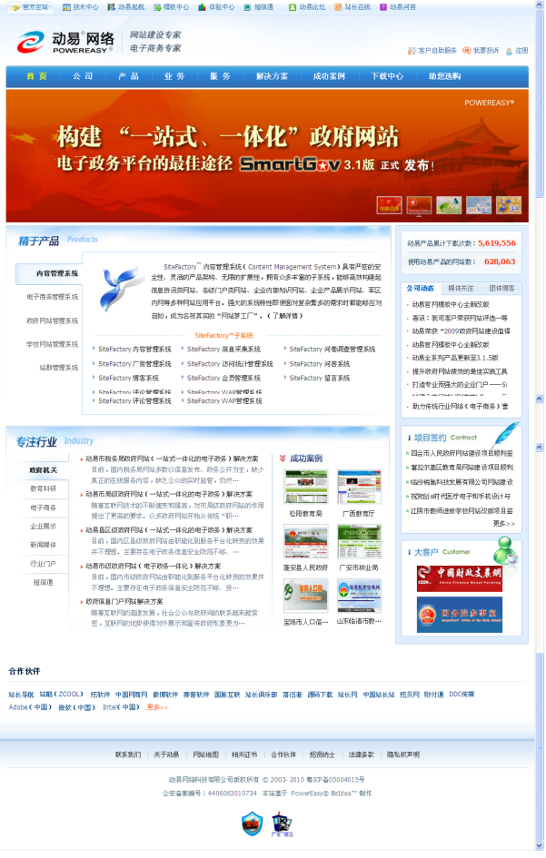 此外,“精于產(chǎn)品 專(zhuān)注行業(yè)”也正是動(dòng)易公司的全新定位。隨著公司的不斷發(fā)展和產(chǎn)品的進(jìn)一步完善和成熟,公司逐漸形成并提煉出了“精于產(chǎn)品 專(zhuān)注行業(yè)”這一明確定位,而這正是動(dòng)易官網(wǎng)全面改版的依據(jù)和背景。七年來(lái),動(dòng)易正是秉持著“嚴(yán)謹(jǐn)務(wù)實(shí) 精益求精”的產(chǎn)品研發(fā)理念,獨(dú)立研發(fā)出了SiteWeaver 內(nèi)容管理系統(tǒng)、SiteFactory 內(nèi)容管理系統(tǒng)、BizIdea 企業(yè)電子商務(wù)系統(tǒng)等成熟的核心基礎(chǔ)產(chǎn)品,并在此基礎(chǔ)上針對(duì)不同行業(yè)推出了SmartGov 政府網(wǎng)站管理系統(tǒng)、SmartSchool 學(xué)校網(wǎng)站管理系統(tǒng)、SiteGroup 站群管理系統(tǒng)等行業(yè)性軟件產(chǎn)品及各級(jí)政府及學(xué)校網(wǎng)站解決方案。而今后動(dòng)易也將更專(zhuān)注于其他更多細(xì)分行業(yè)的研究,以為更多的行業(yè)用戶(hù)提供網(wǎng)站建設(shè)最佳解決方案。