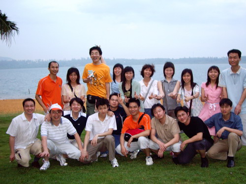 沒(méi)過(guò)一會(huì)兒,我們便在一處有索橋的景點(diǎn)下了車,看著已被別人損壞的索橋,大家開(kāi)始有點(diǎn)猶豫,唯有勇士煥林首先用他的行動(dòng)給咱們下了一個(gè)叫“上”的決定,看著他亦步亦趨小心翼翼的樣子,真讓人為他揪了下心,“砰”!煥林差點(diǎn)踩空了腳,還好在他的努力下,最后終于保持了平衡,安全度過(guò)第一道關(guān)口。煥林的舉動(dòng)鼓舞了在場(chǎng)的每一位成員,大伙都爭(zhēng)先恐后的搶著要上,不過(guò)15分鐘,整個(gè)索橋都給他們征服了,其中還涌現(xiàn)出不少“巾幗英雄”呢。要數(shù)驚險(xiǎn)刺激,除了鐵索就要數(shù)我們?cè)诂敔柡俗呐炌Я?。艦艇在艦艇師傅的控制下左右顛覆,引?lái)各位MM的驚恐地尖叫聲,這聲音似乎要震倒山谷,艦艇高速穿行而濺起的水花打濕了我們?nèi)怼?br>  過(guò)了索橋、玩了艦艇、下一站到的可是這湖光巖別具特色的“農(nóng)家莊”了,這里的揪千讓我們找回了童真,簡(jiǎn)陋的小茅屋讓我們想到了祖輩們辛苦耕作的場(chǎng)景……,調(diào)皮的必武、冬勇等人還玩起了多人兩足,可愛(ài)的動(dòng)作逗到我們?cè)趫?chǎng)的同事都在旁傻笑。