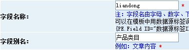如想要字段在前臺中顯示,我們可以更改數(shù)據(jù)源標(biāo)簽后把功能在模板中調(diào)用出來,調(diào)用方法跟原字段調(diào)用方法一樣,即{PE.Field id="cone" fieldname="字段名稱" /}。一個模型里支持多個多級聯(lián)動自定義字段 。