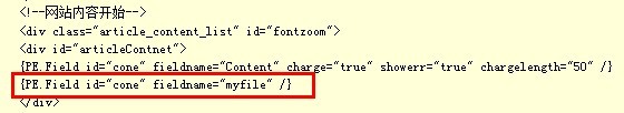 依次點(diǎn)擊系統(tǒng)設(shè)置——模板標(biāo)簽管理——模版管理——內(nèi)容頁(yè)模板,找到“默認(rèn)文章內(nèi)容頁(yè)模板”,在里面插入{PE.Field id="cone" fieldname="myfile" /}標(biāo)簽。