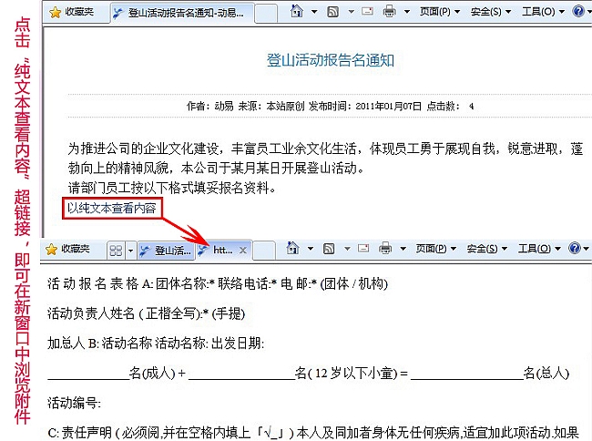 現(xiàn)在只需經(jīng)過(guò)簡(jiǎn)單的設(shè)置,我們即可以純文本方式在線查看Word及Excel附件,操作起來(lái)更便捷,同時(shí)文檔也更美觀。另外附件上的文字也會(huì)隨著網(wǎng)頁(yè)被搜索引擎收錄,這無(wú)形中增加了信息量,有利于SEO優(yōu)化。而用戶瀏覽網(wǎng)頁(yè)文檔附件時(shí),使用純文本方式是最安全的。因?yàn)榧兾谋痉绞街粫?huì)顯示文字,這樣可以有效避免感染宏病毒,而且無(wú)論用戶本機(jī)中有沒(méi)有安裝office,都可以在網(wǎng)頁(yè)上預(yù)覽Word及Excel文檔,這樣就可以不受環(huán)境限制而且瀏覽速度還非常迅速。下面我們來(lái)看看效果圖: