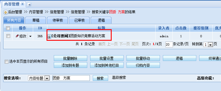 后臺搜索支持空格分詞搜索—動易5.0版新特性