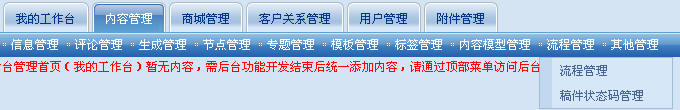 但是2006版中,第一流程不可定制、第二僅限于制定的這些過程。但是到了SiteFactory 版中,首次出現(xiàn)了“流程管理”和“狀態(tài)代碼管理”兩個菜單?!肮ぷ髁鳌钡膽帽榧熬W(wǎng)站管理的方方面面。