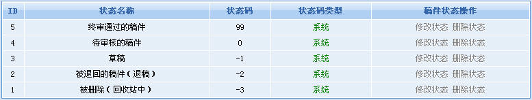 這樣,當用戶投稿后,稿件將自動變?yōu)椤按幚怼?,然后出現(xiàn)在編輯可見的列表中,當編輯打開一篇稿件,即可設置“審閱中”狀態(tài),編輯審閱完成后,根據(jù)情況使其通過或退稿。通過的文章將出現(xiàn)在管理員可見的列表中,待管理員進行生成操作后,文章狀態(tài)自動變?yōu)椤耙寻l(fā)布”。