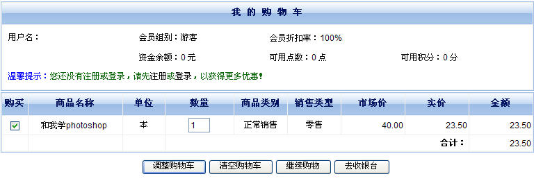 目前,相當(dāng)部分的網(wǎng)店系統(tǒng)采用的購物模式都是:注冊(cè)-》登錄-》購物-》確認(rèn)訂單-》查詢訂單,而對(duì)游客的購買行為不支持或友好度很低。而其實(shí)游客也是網(wǎng)店重要的客戶資源,我們正在努力針對(duì)游客的購買行為做出更多的功能設(shè)計(jì)。