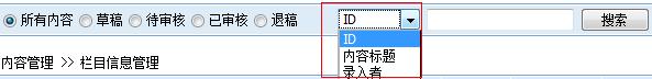 先來(lái)看看SiteFactory? 1.0版的搜索界面,很明顯只能夠搜索“文章ID”、“標(biāo)題”、“錄入者”這三項(xiàng):
