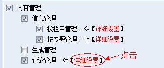 將角色賦予“評(píng)論管理”權(quán)限后,就可以開(kāi)始設(shè)置上圖中“此角色”在各個(gè)欄目節(jié)點(diǎn)中所擁有的評(píng)論相關(guān)權(quán)限了。評(píng)論的權(quán)限包括回復(fù)評(píng)論、審核評(píng)論、管理評(píng)論三種權(quán)限。